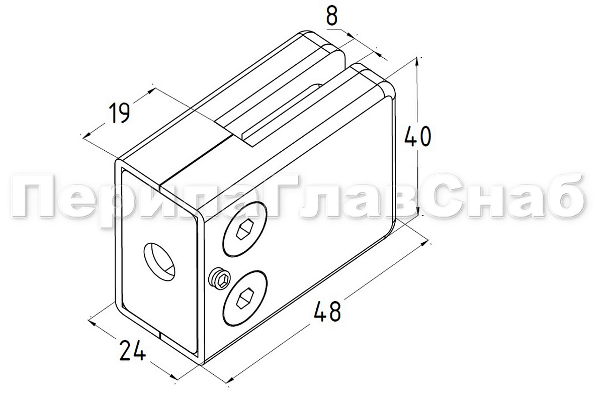 Стеклодержатель штампованный квадратный на плоскость для стекла 8 мм (4+4 мм). Деталь полированная, под золото. Марка стали - AISI 304
