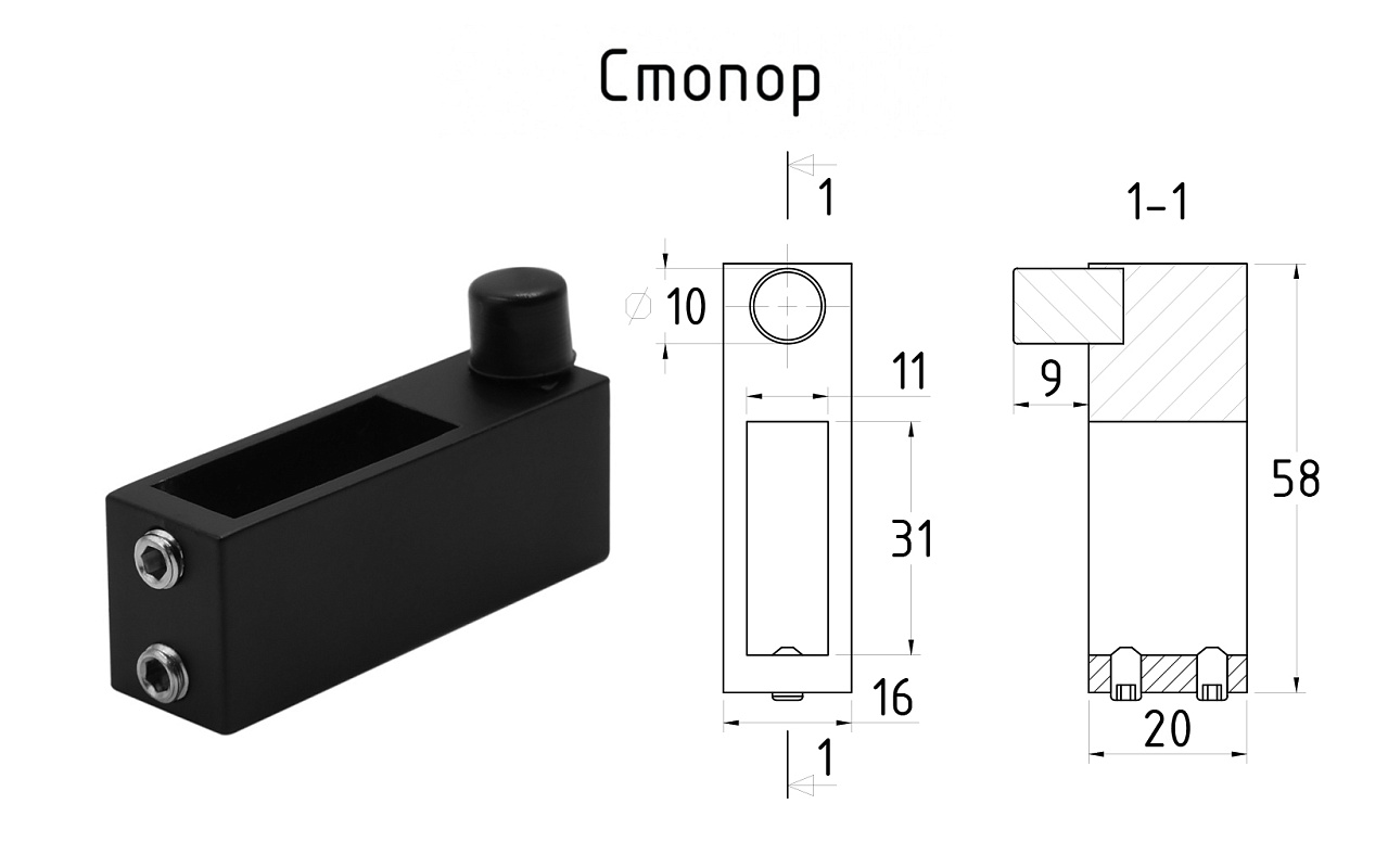 Коннектор регулируемый для трека 30х10 мм, нержавеющая сталь AISI 304, черная t465 BL купить в Самаре