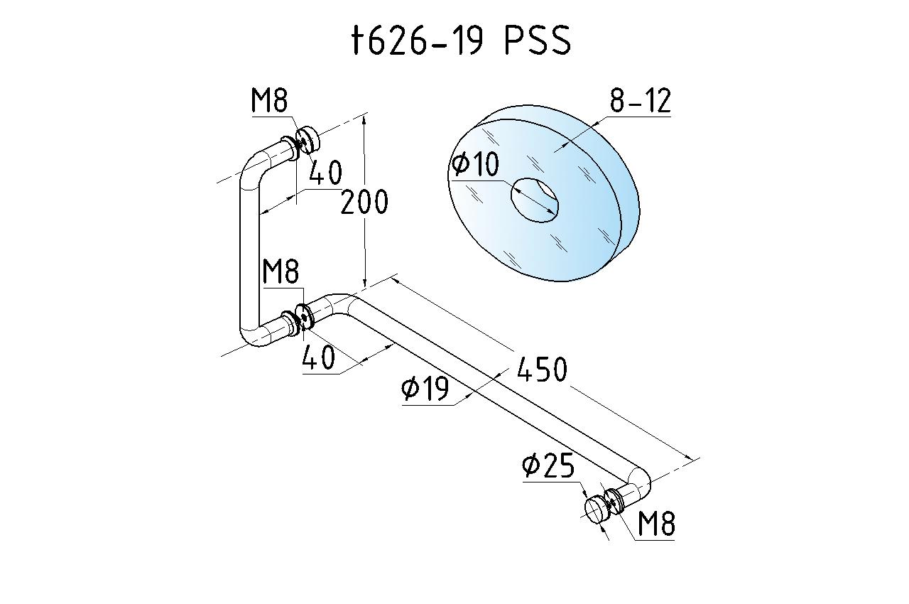 Ручка-полотенцесушитель, полированная, без кноба 19х450, для стекла 8-10 мм, под отверстие 12 мм t623-450 PSS