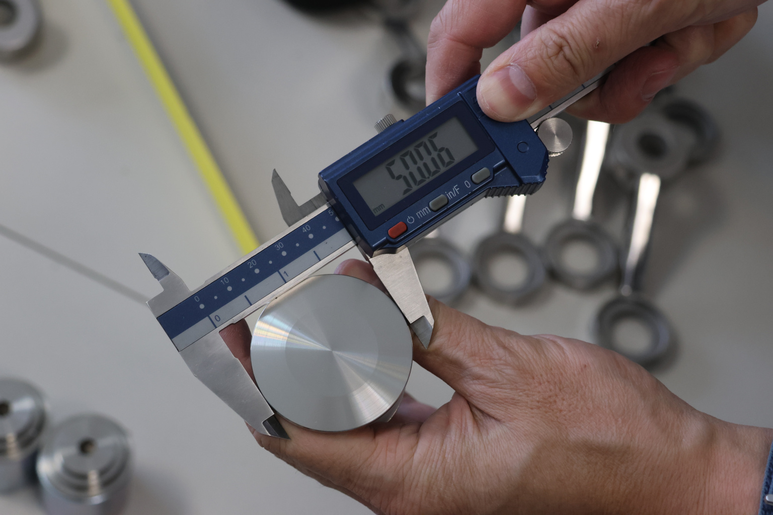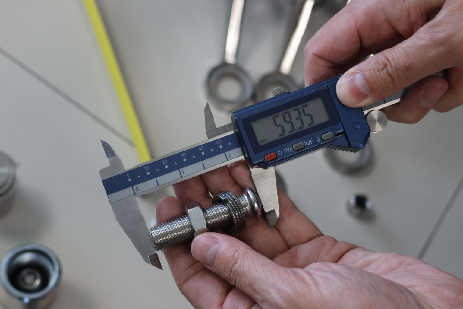 Рутель (стеклодержатель) для вантового крепления козырьков, регулируемый, разборный, под стекло от 10 до 26 мм, полированный, диаметр внешнего кольца 50, шпилька М14х1.5 мм (aisi 304)