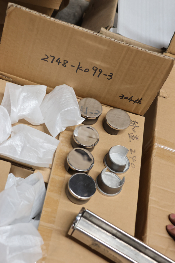 Заглушка для поручня с пазом диаметром 42.4 мм 5х34 мм. Деталь полированная, марка стали - AISI 304