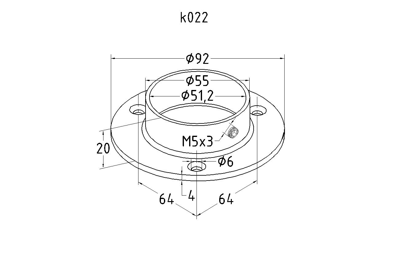 Фланец для трубы Ø50.8 мм, литой, полированный под 3 самореза 4.8 мм (AISI 304) k022