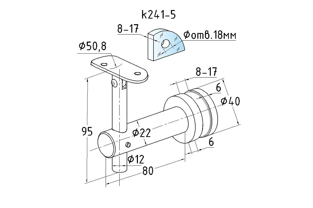 Деталь удобная в работе, не требует никаких специальных навыков, легко монтируется на ограждении для крепления выносного поручня на несущем стекле.