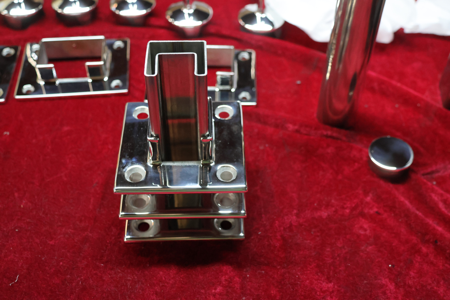 Фланец для поручня с пазом 40х40 мм, полированный, (AISI 304)
