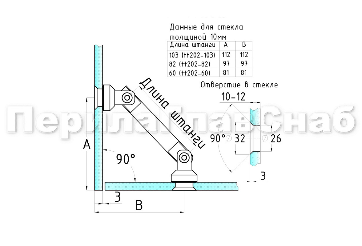 Крепление стекло-стекло, штанга 103 мм, под зенковку tt202-103 SSS