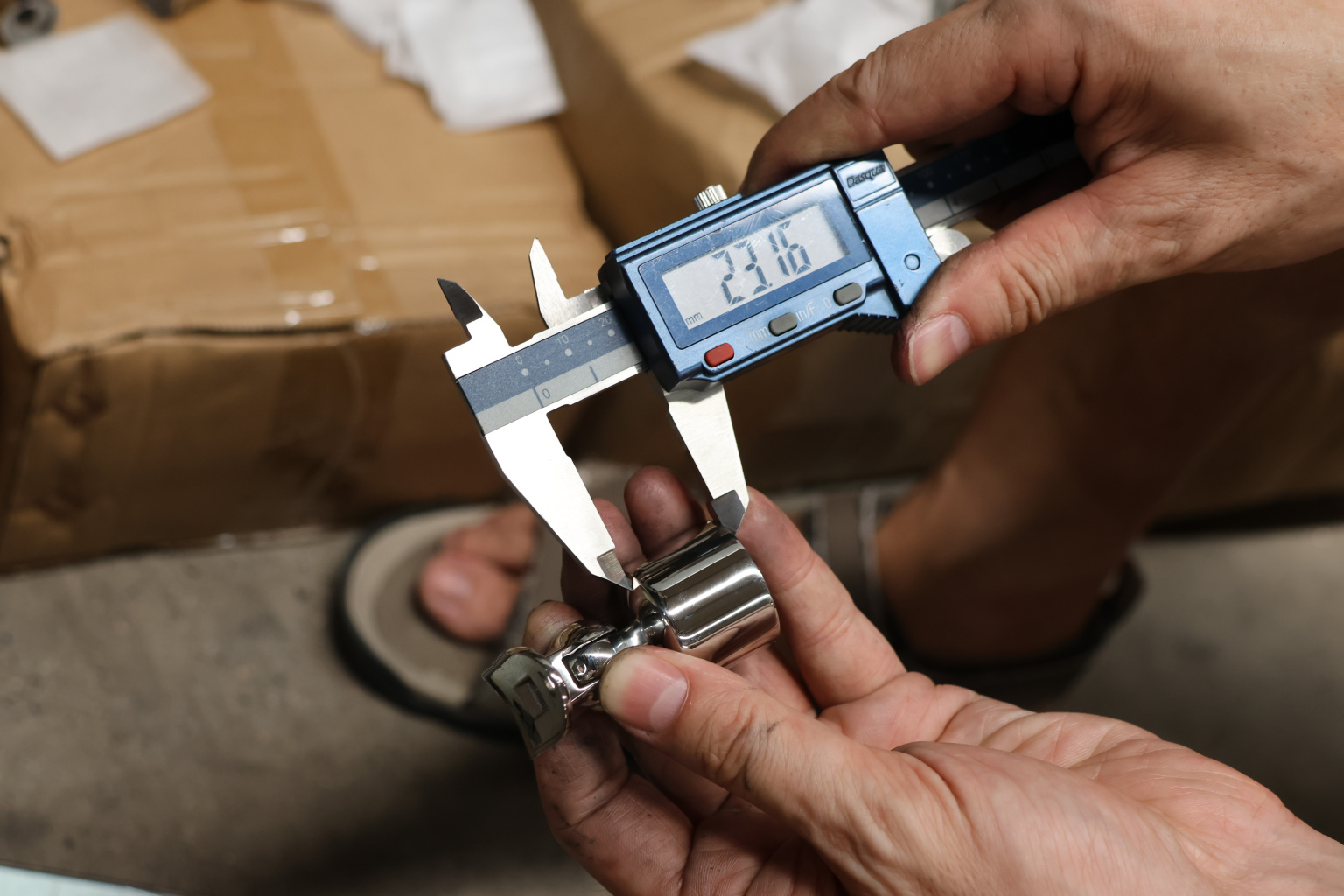 Наконечник наружный на стойку Ø25.4 мм, с регулируемым ложементом под трубу Ø38.1 мм, литой, полированный, нержавеющий AISI 304, k326