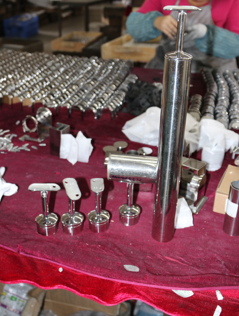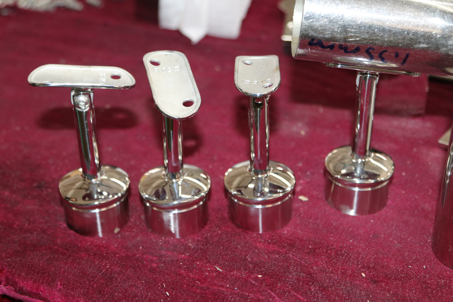 Наконечник палец на стойку Ø42.4х1.5 мм, с регулируемым ложементом под поручень Ø50.8 мм. Деталь литая, полированная, с повышенной коррозионной стойкости, нержавеющая. Марка стали - AISI 316