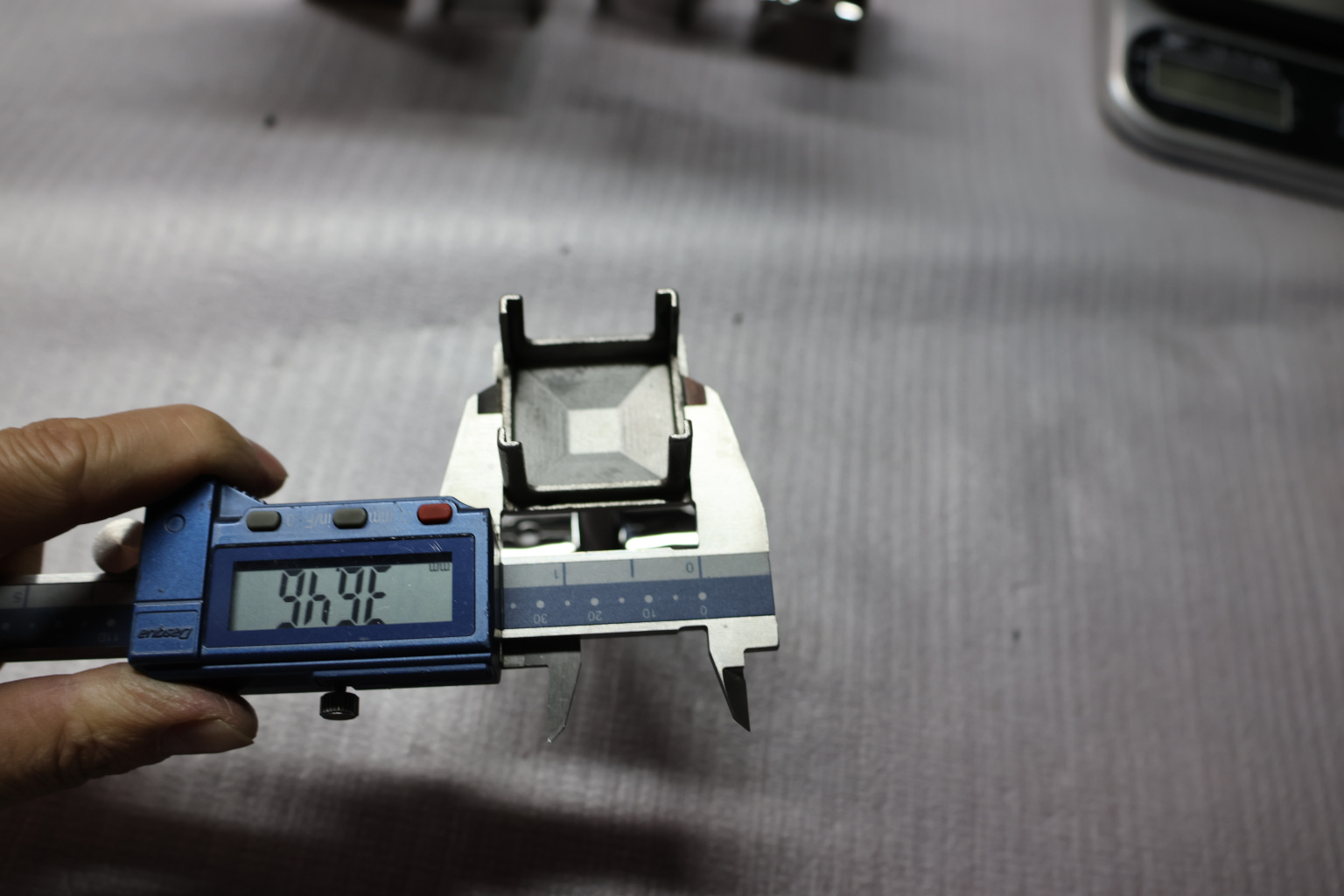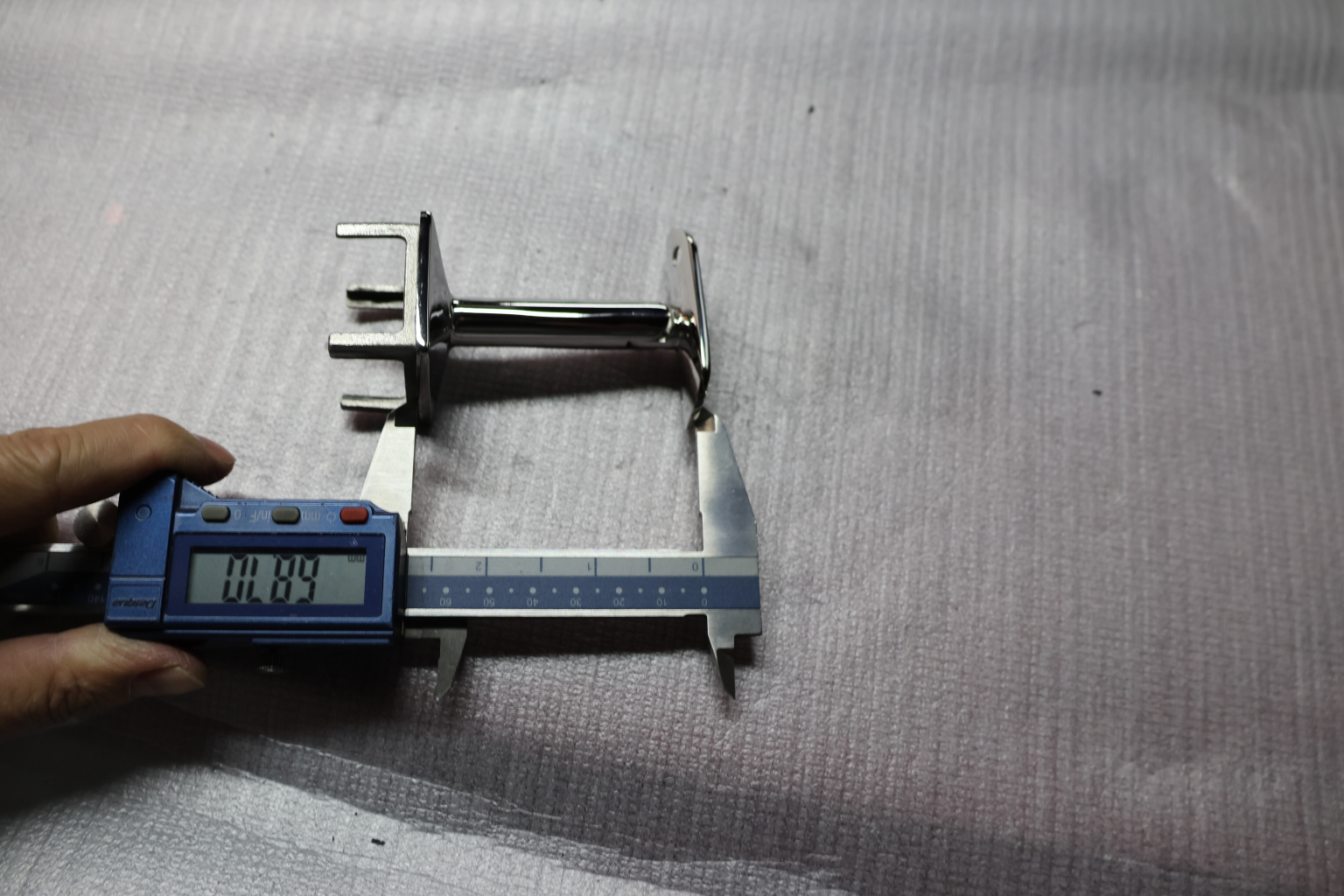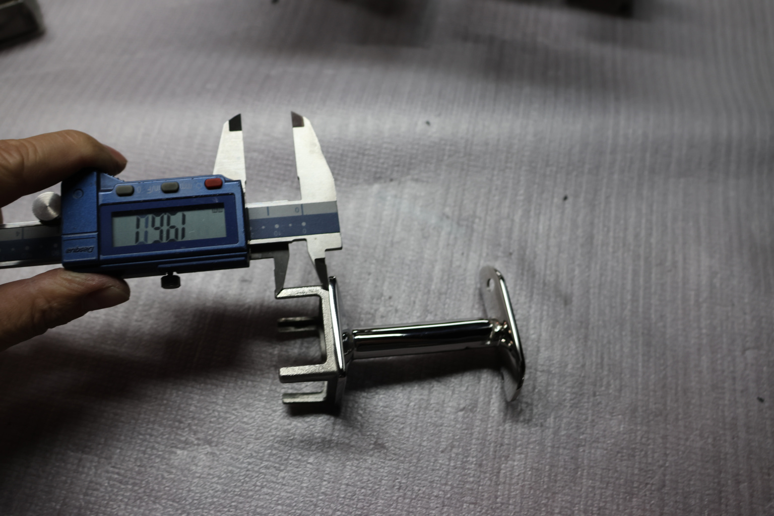 Наконечник палец на стойку из профильной трубы диаметром 40х40 мм, с регулируемым ложементом под поручень Ø50.8 мм. Деталь полированная, литая, облегченная нержавеющая. Марка стали - AISI 304