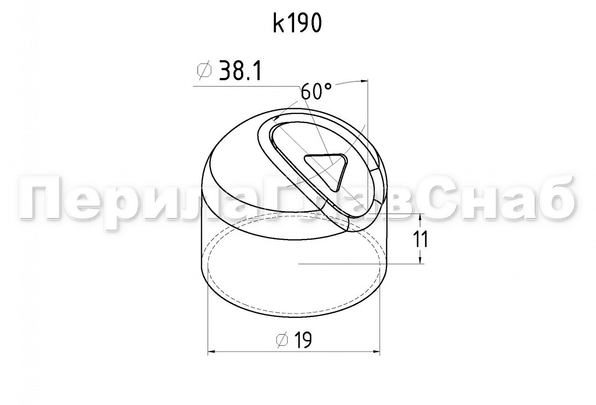 Наконечник штампованный (СПС) косой 30° на трубу Ø19 мм, для поручня Ø38.1 мм, полированный, нержавеющий, 400 Grit , AISI 304, k190