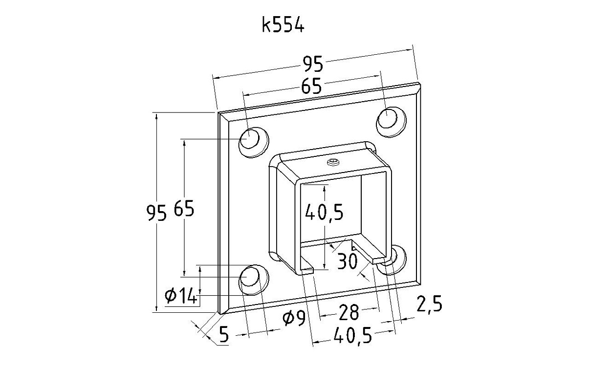 k545 - соединитель для поручня с пазом 40х40 мм, полированный
