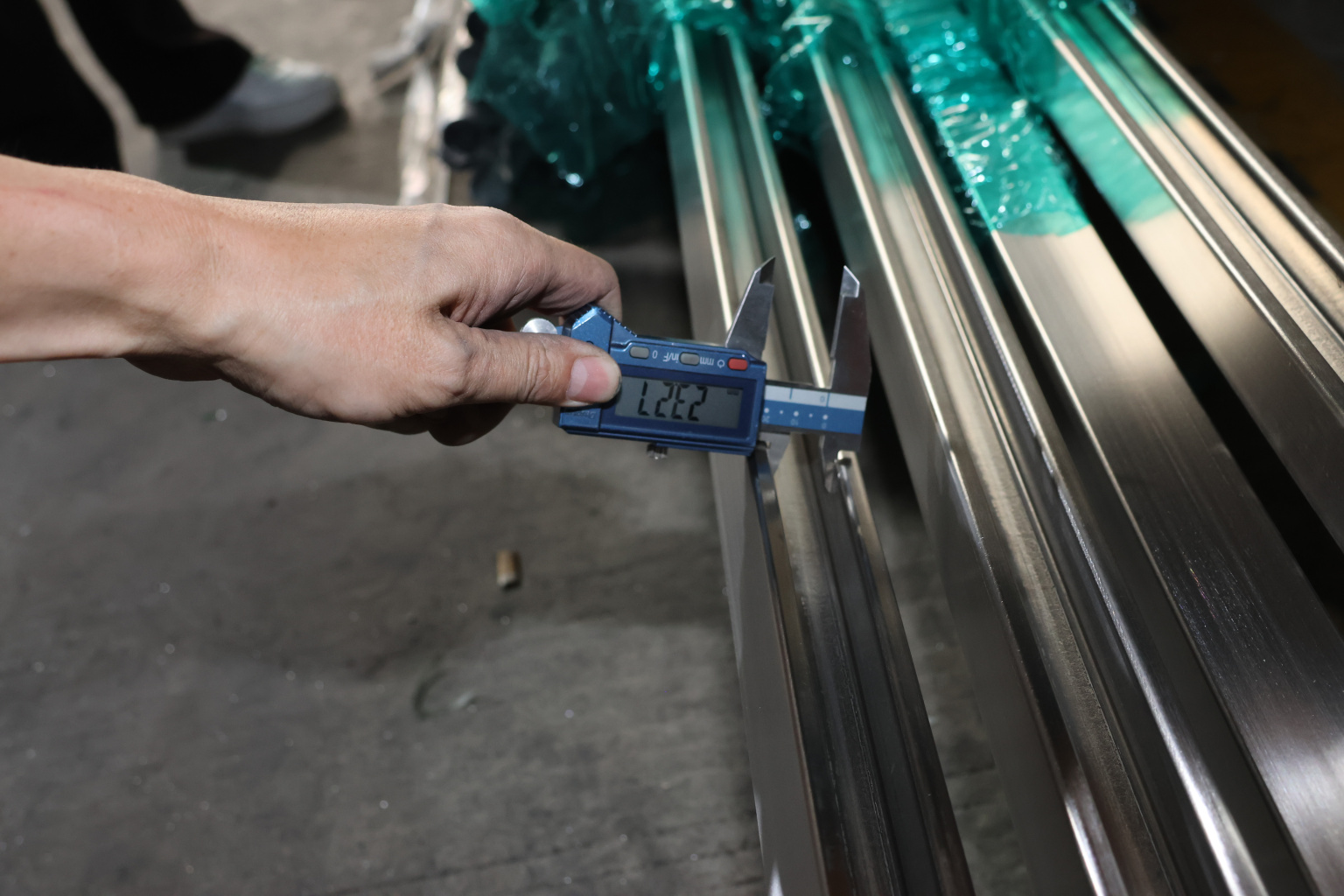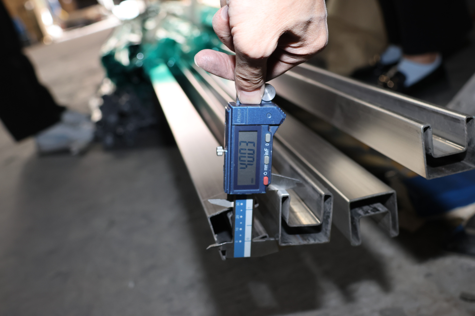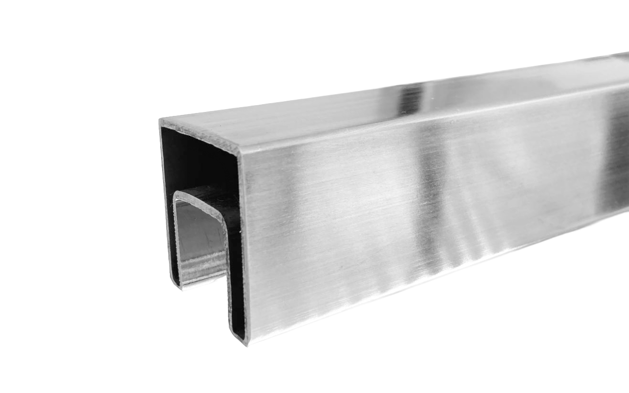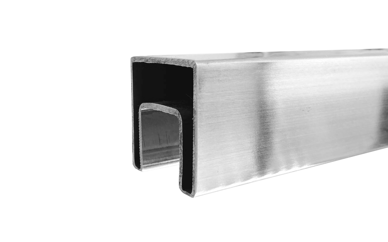 Труба 40х40 мм с пазом 24 х 24 под стекло, AISI 304 шлифованная k856-2