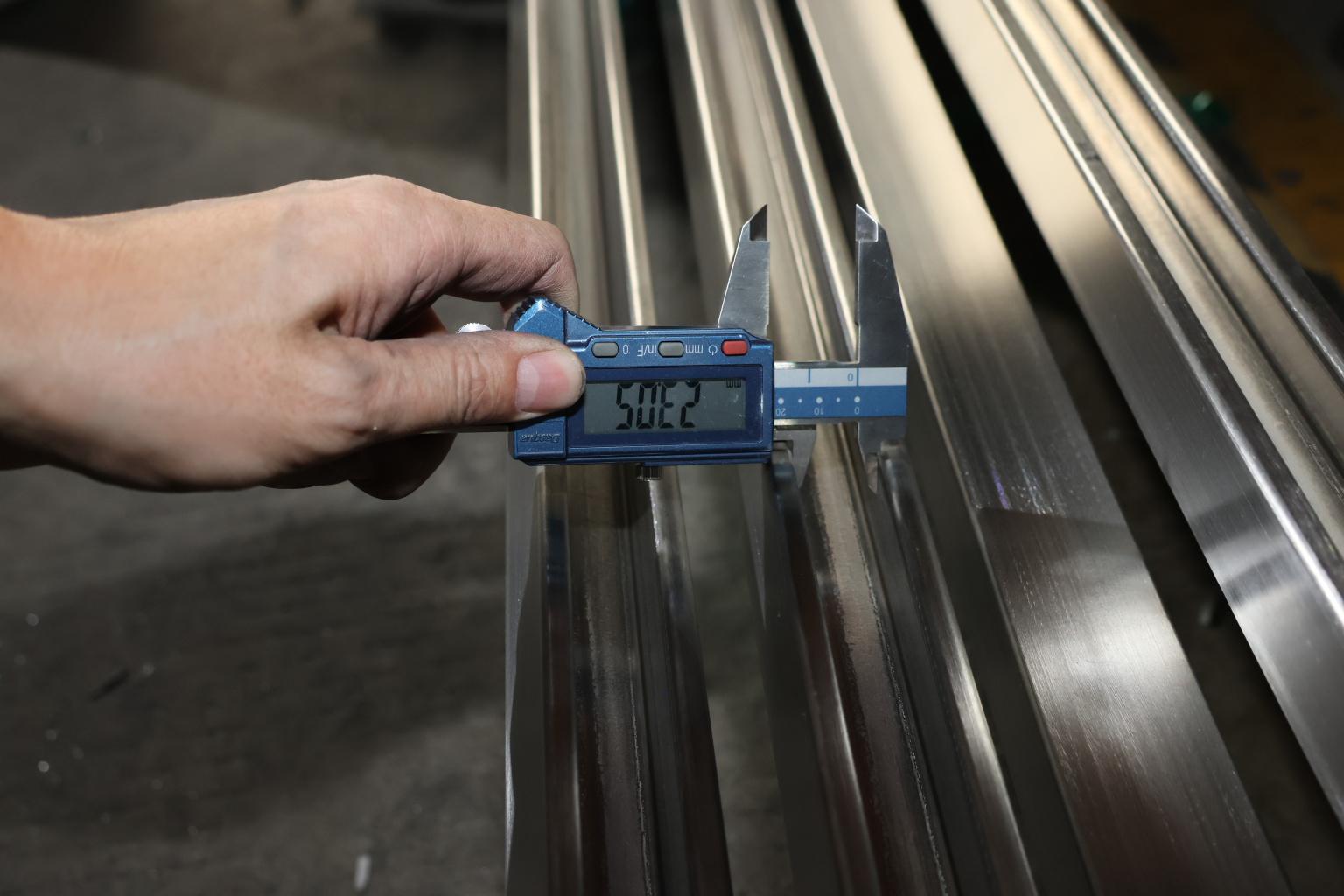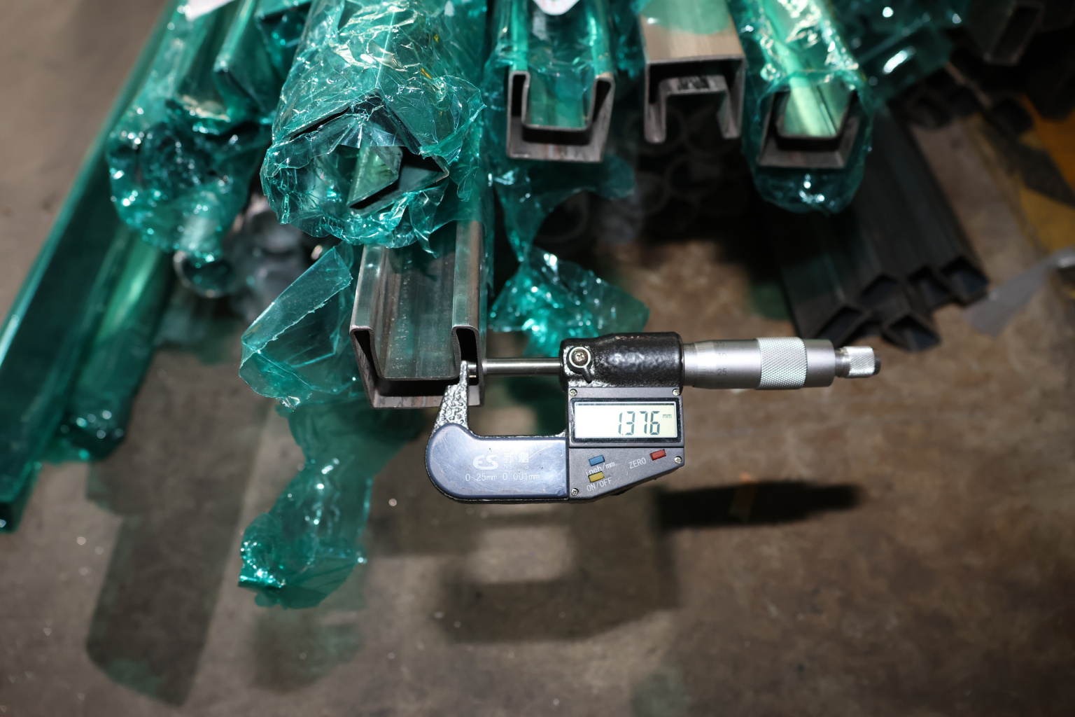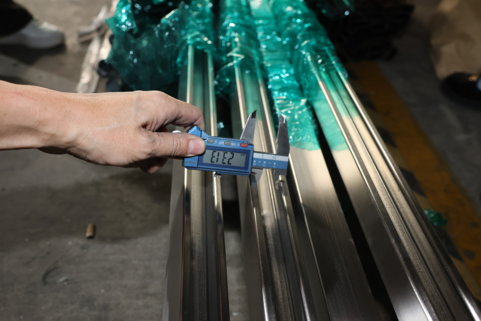 Труба 40х40 мм с пазом 24 х 24 под стекло, AISI 304 шлифованная k856-2