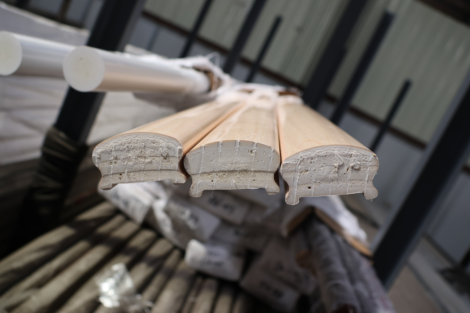 Пластиковый поручень фигурный текстурный, цвет беленый дуб, длина 4м k899-3