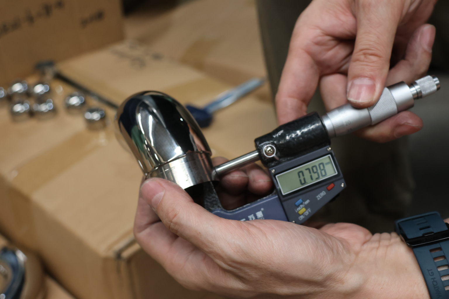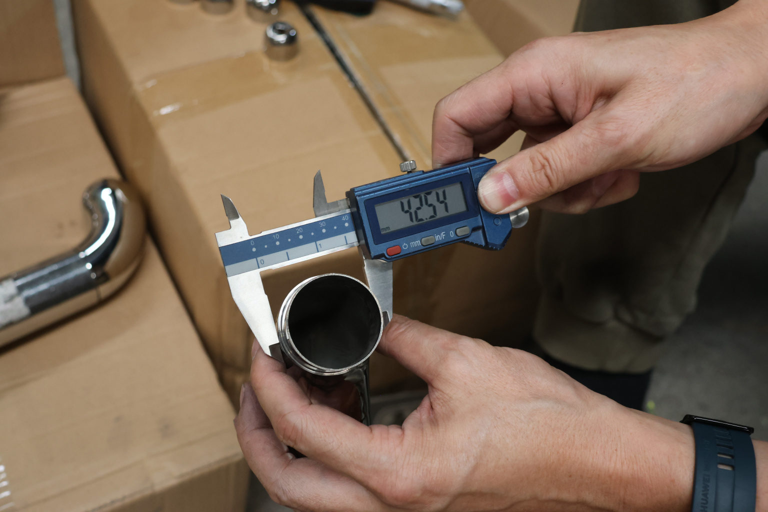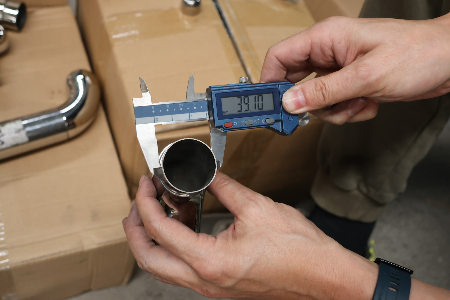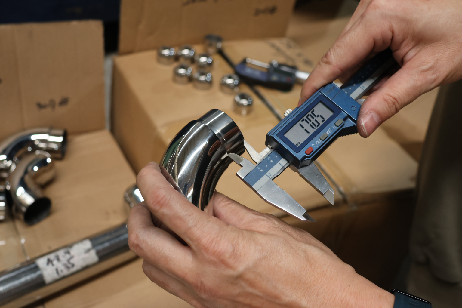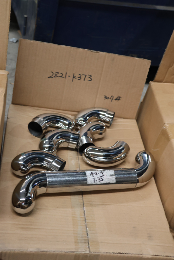 Отвод оконечный с круглой заглушкой под трубу Ø42.4. Деталь литая, полированная #600, марка стали - AISI 304