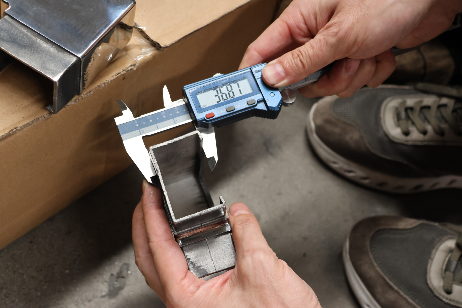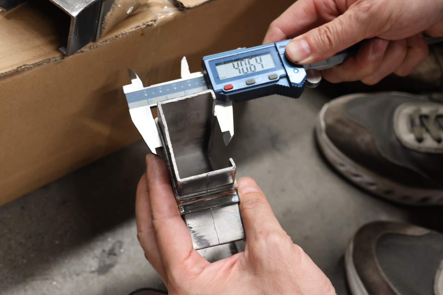 Отвод для поручня с пазом 40х60 мм. Деталь полированная, марка стали - AISI 304