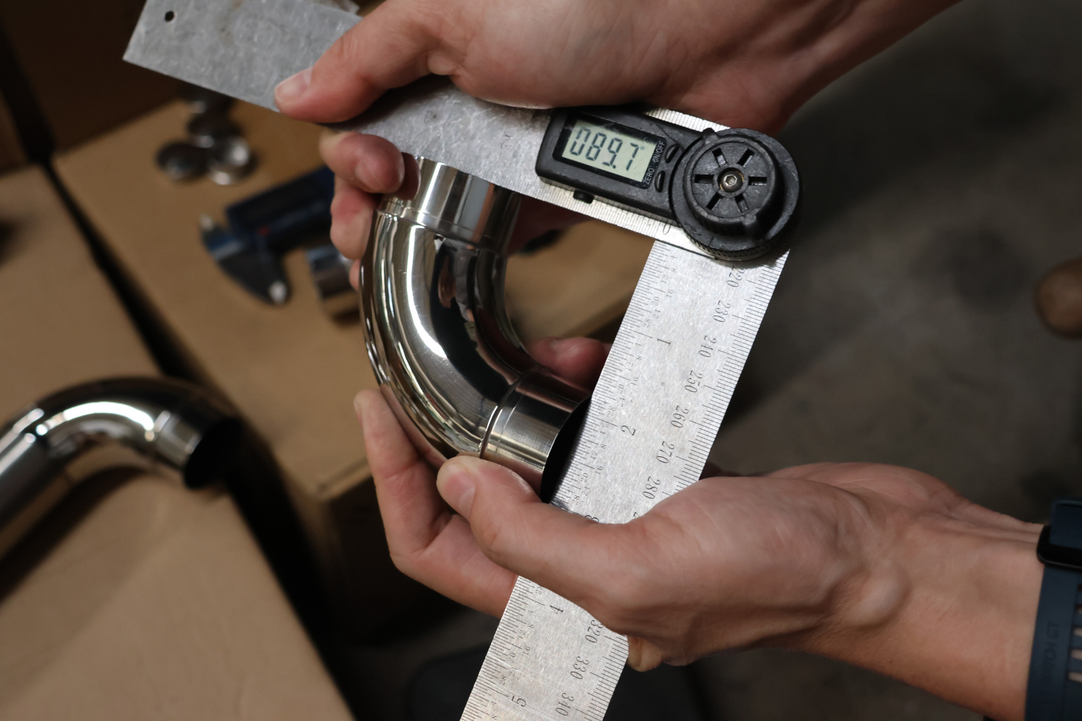 Отвод поручня под Ø42.4х1.5 мм, 90°, литой, полированный, с вставками (AISI 304)