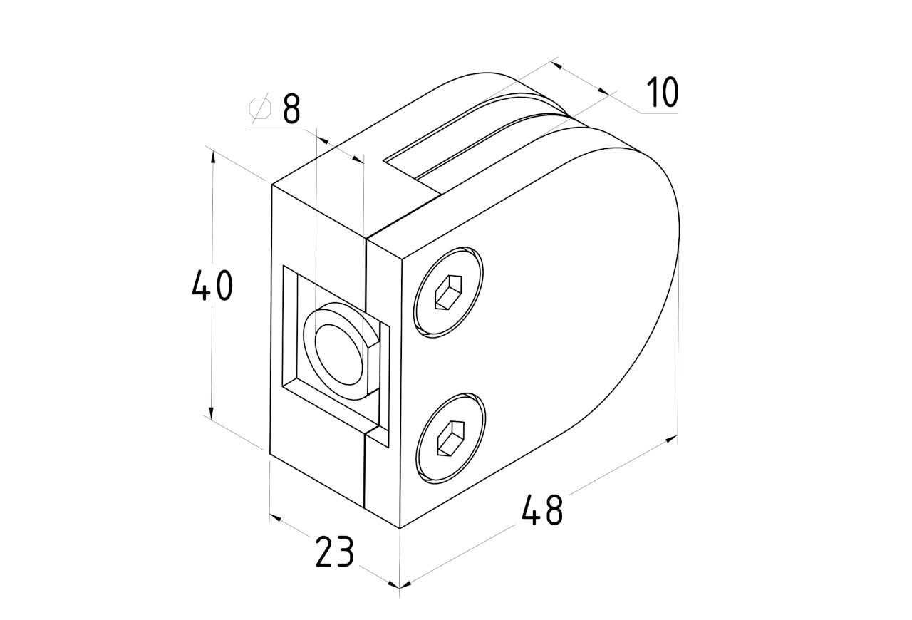 Стеклодержатель штампованный, под стекло 10 мм (5+5 мм), на плоскость 40х24х48 полированный (AISI 304) k352-10