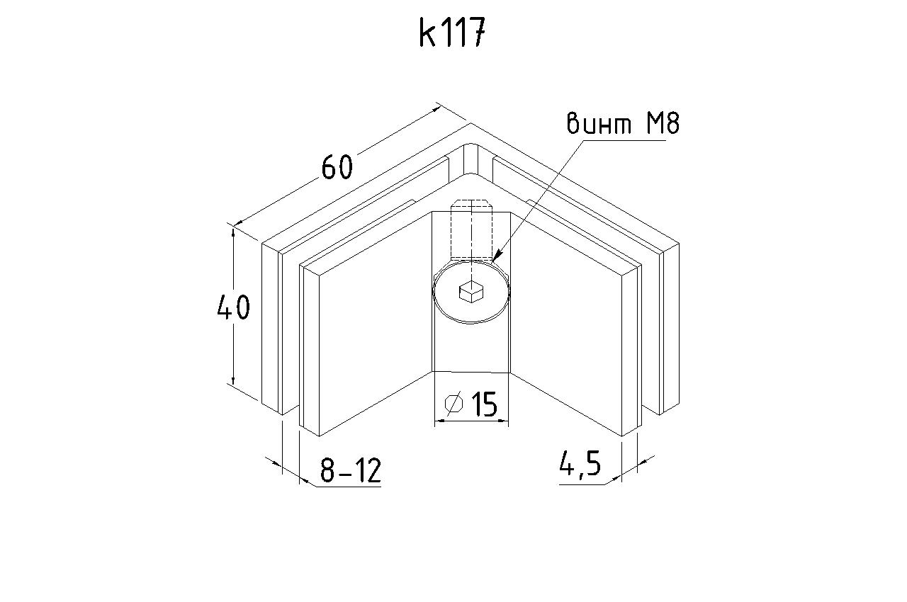для соединения стекол между собой под углом 90 гр. в ограждениях, перегородках