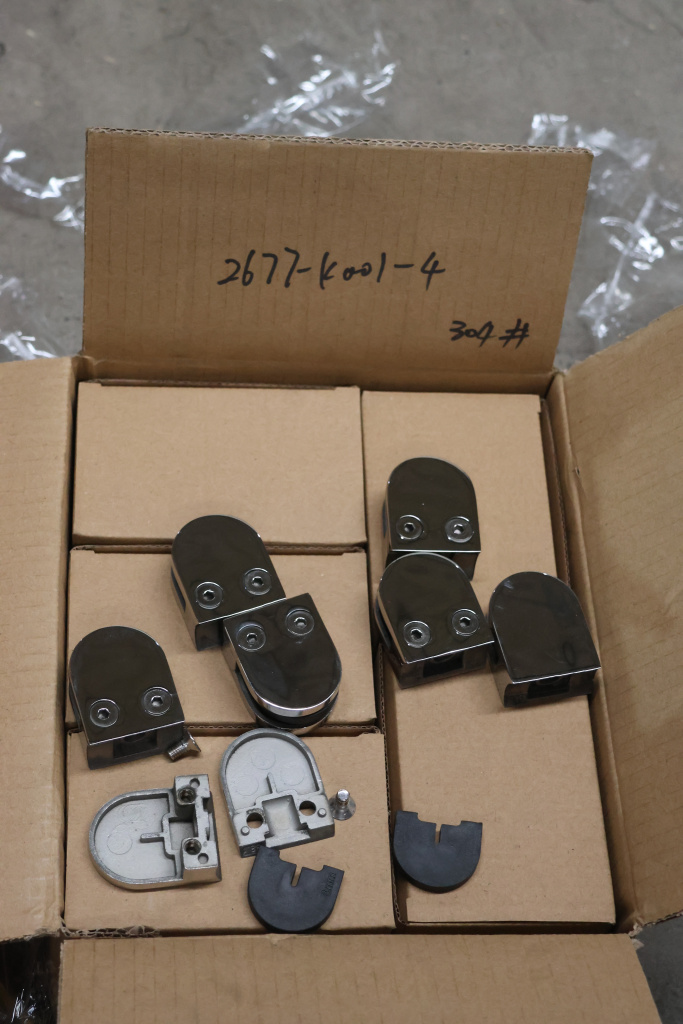 Стеклодержатель литой под стекло 8 мм (4+4 мм), под стойку Ø38.1 мм 40х22х49, полированный (AISI 304) k001-4
