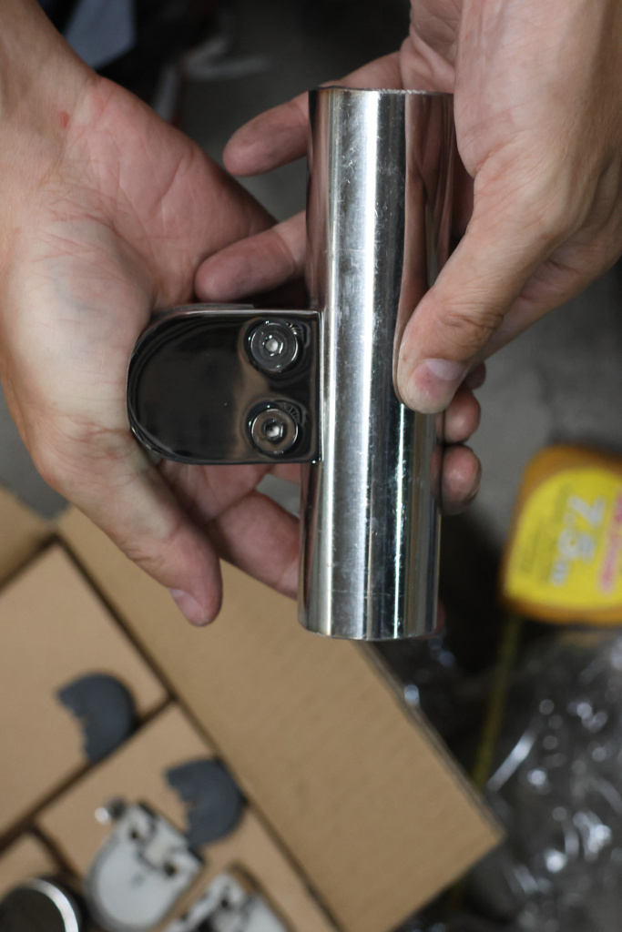 1. Для этого приваривают корпус стеклодержателя к внешней стенке трубы стойки.
