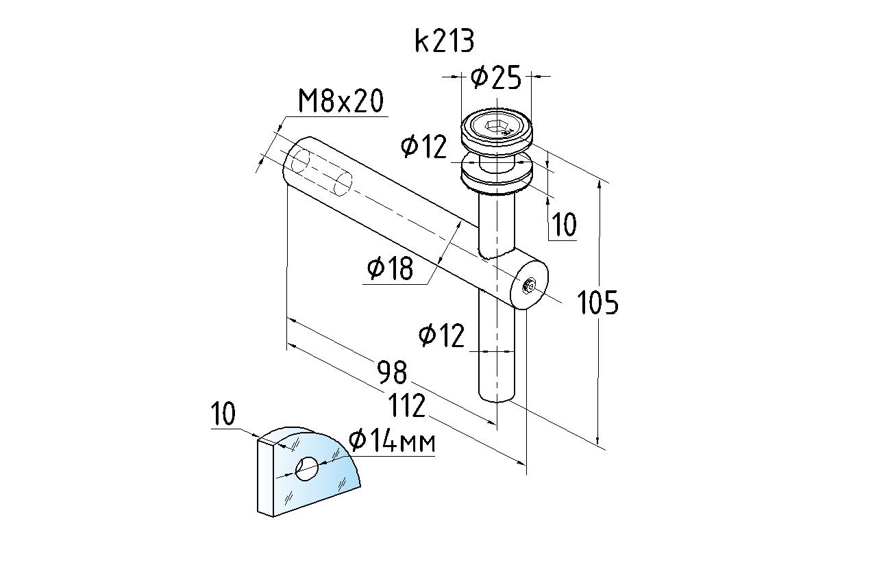Спайдерный стеклодержатель для стекла 10 мм (5+5 мм), регулируемый, полированный (AISI 304) k213