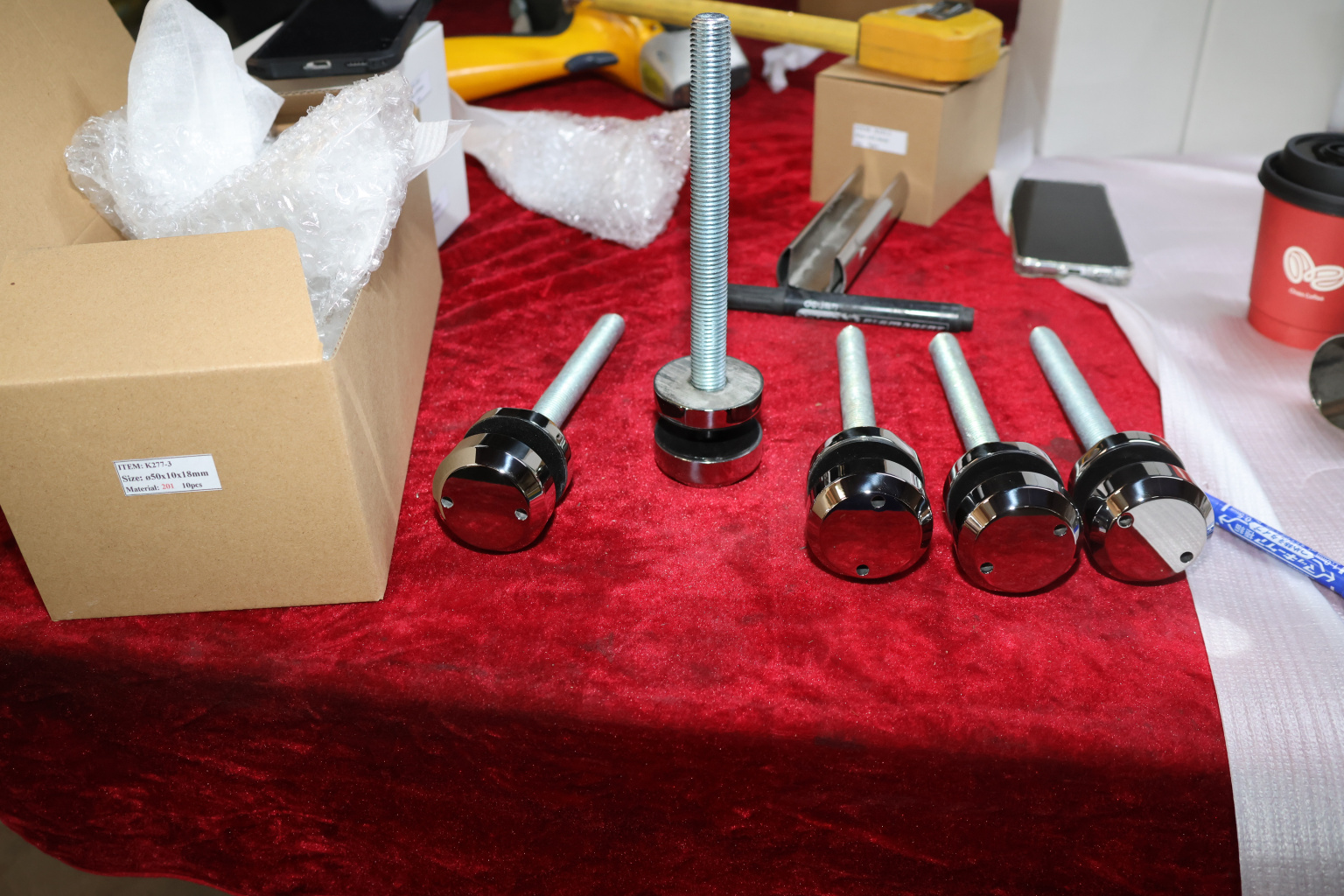 Комплект торцевого крепления несущего стекла, шпилька М16 AISI304, гайка-шайба Ø50х10мм, с регулировкой вылета 25-39мм, полированный, AISI 304 k277-11 купить в Самаре