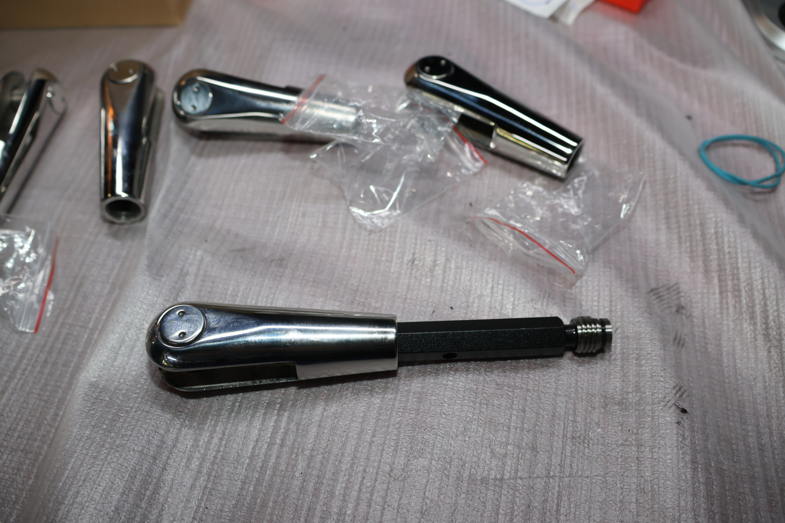 Стеклодержатель Ø50х10х18, шпилька М16х205 мм, для стекла 8-40 мм, AISI (201), с возможностью регулировки выноса до 65 мм, для торцевого крепления стекла, полированный, литой k277-3