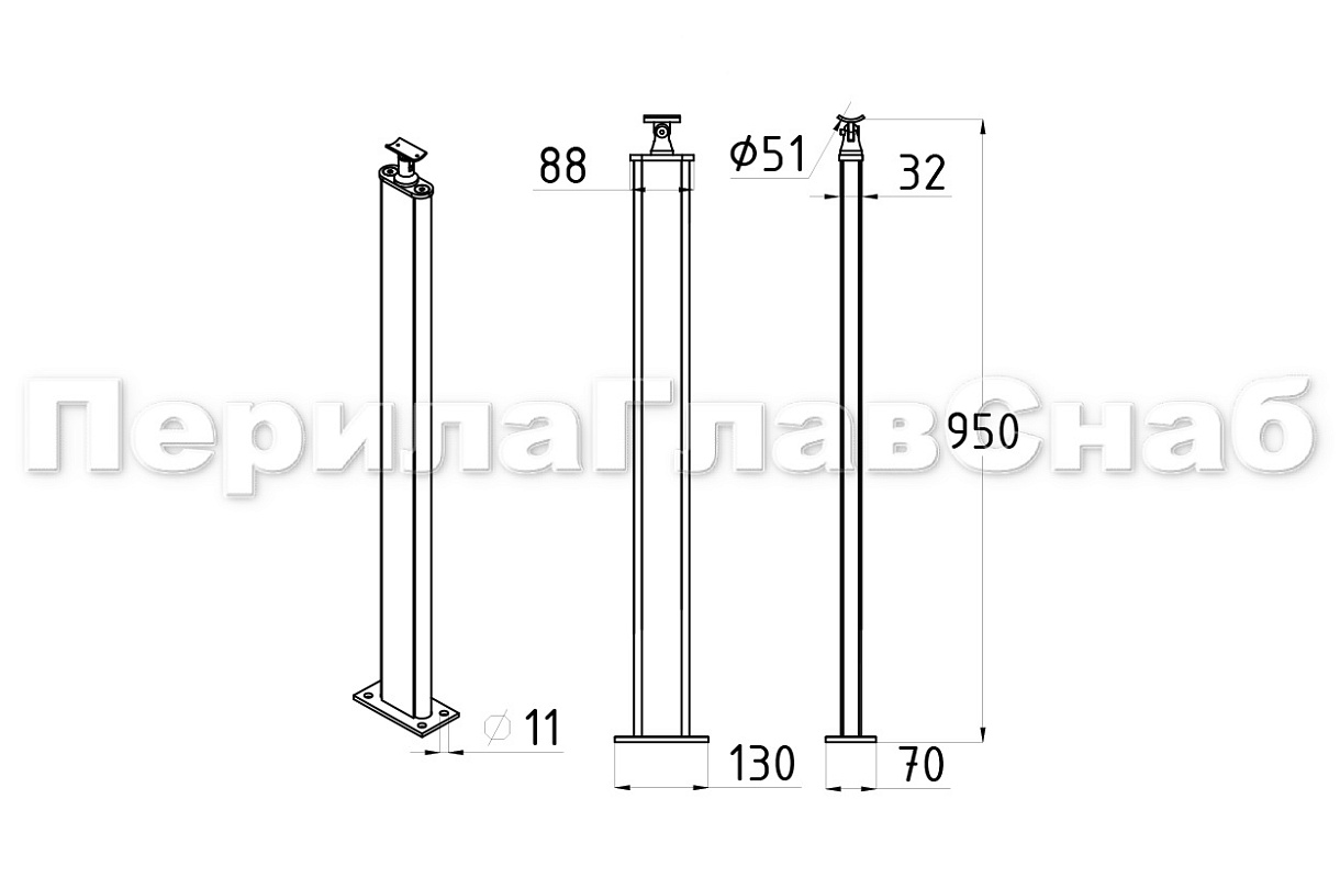 Стойка в сборе с деревянными вставками из дуба на 4 анкера шлиф.