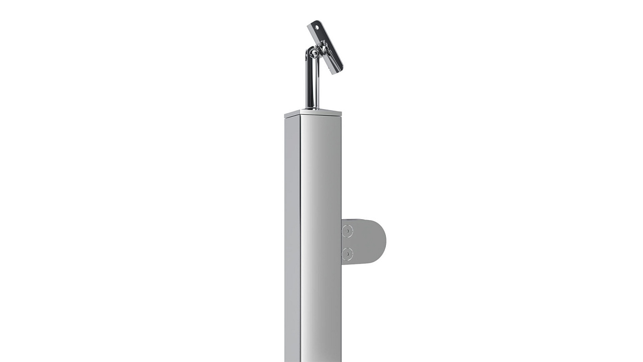 Стойка квадратная 40х40: 2 литых зажимн. стеклодержателя, шлифованная, высота 950 мм, марка стали- AISI 304