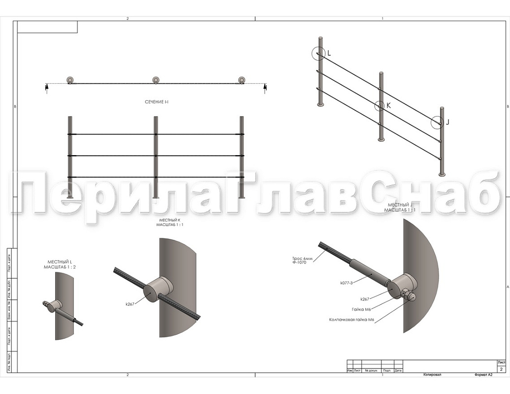 Устанавливается на круглую стойку ограждения с тросами. Благодаря внешнему сходству бочонка с ригеледержателем создается имитация ограждения с ригелями. Но роль ригелей выполняет не трубка, а тросик из нержавеющей стали. В отличие от традиционной модели, держатель служит не для натяжения тросика между стойками, а только для его фиксации на стойках. В итоге тросик фиксируется держателем не намертво, а просто вдоль линии ограждения. Для натяжения тросика используется специальный талреп, например модель k268с двусторонней резьбой внутри.