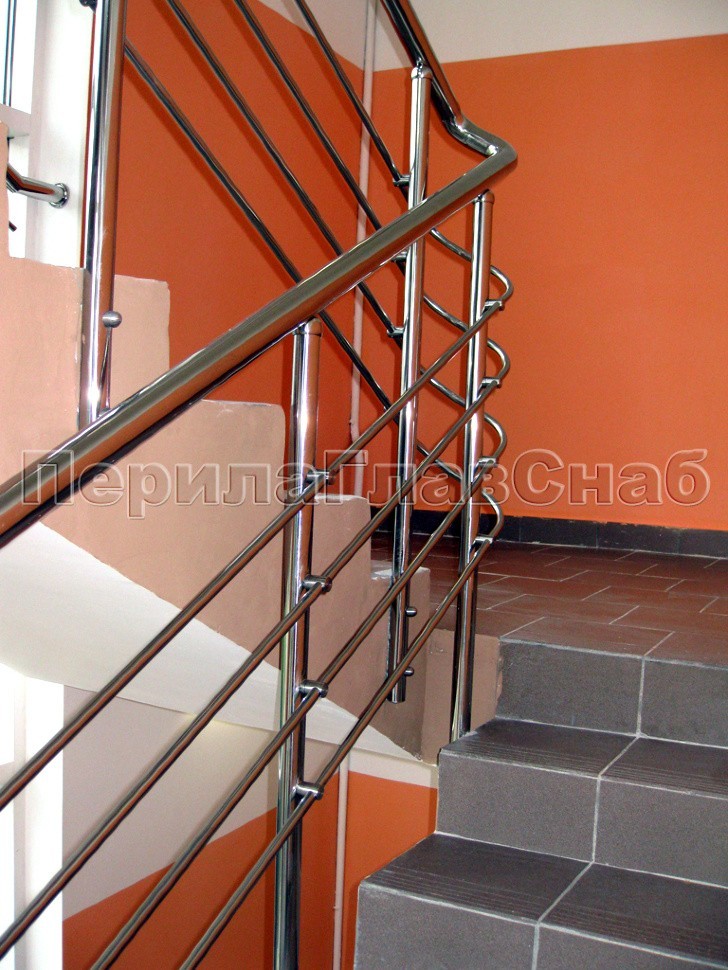 Крепление стоек было торцевое, так как по просьбе заказчика необходимо было максимально увеличить полезную ширину марша, согласно строгим требованиям безопасности.