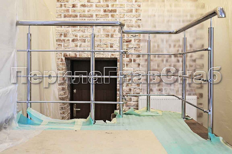 Ограждение лестницы из нержавеющей стали в частном доме пос. Лермантово