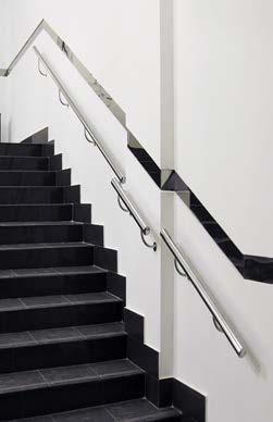 Пристенные поручни модели k731-33 или k730-33 подойдут для современных зданий, где чаще всего используются лестницы с маршем в 4200 мм или 10 ступеней. Для таких лестниц длинна лестничного поручня должна быть 3300 мм.