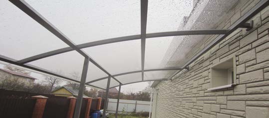 Реальность: А вот это совсем не миф. Именно поэтому этот материал так популярен при постройке различных теплиц. Однако, какая практическая польза от этого при создании козырька над дверью или навеса над машиной. Изменится ли температура на крыльце в зависимости от того из какого материала вы установите козырёк?